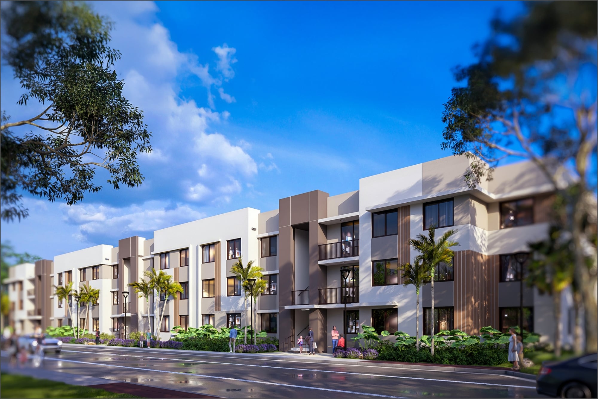 Brisas del Sol no es un solo edificio, sino dos estructuras independientes que suman 146 unidades de alquiler. El primero, de estilo jardín y tres pisos, se ubica en la 455 SW 16 Avenue y ofrece 36 departamentos de dos y tres dormitorios. Está destinado a hogares cuyos ingresos se sitúen entre el 60% y el 80% del Ingreso Medio del Área (AMI).