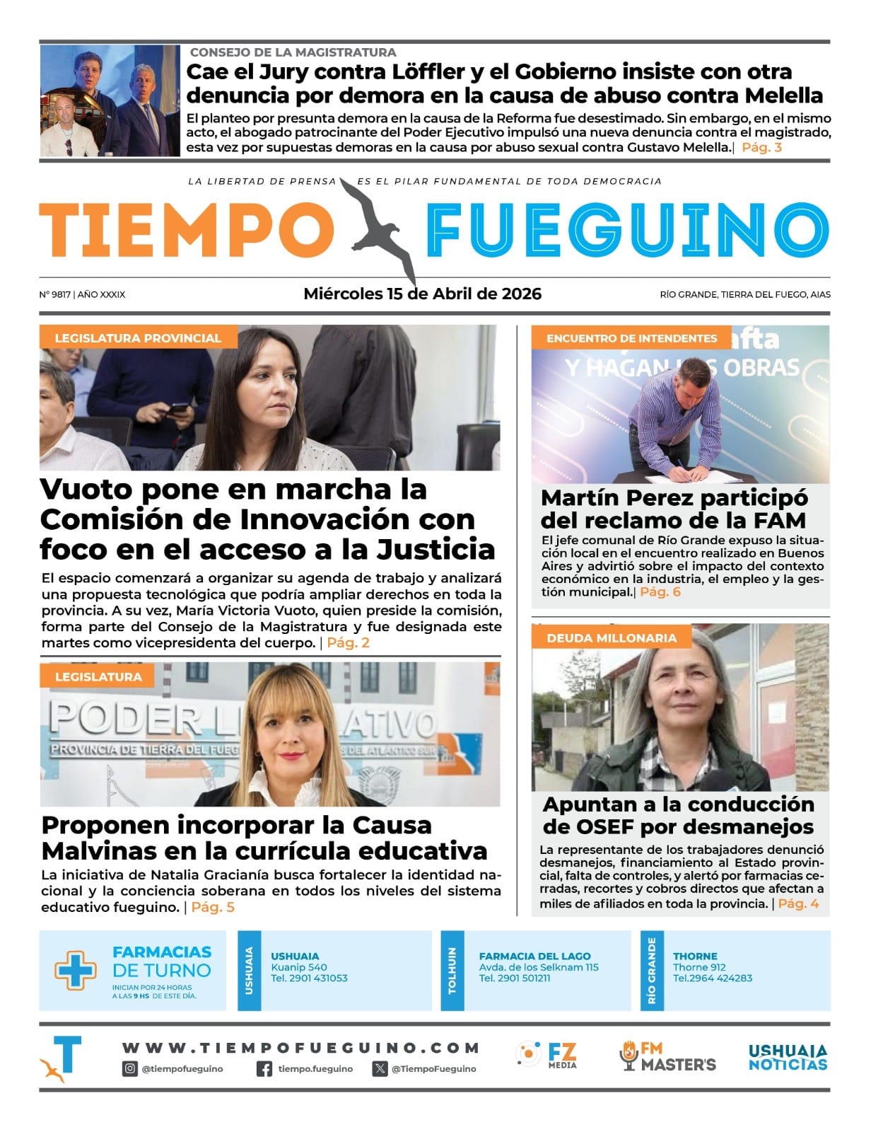 El periódico Tiempo Fueguino, fundado en 1987, se consolida como el primer diario local de la provincia, manteniendo su compromiso con la información y la pluralidad de voces fueguinas.